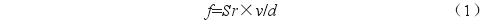 根據(jù)大量實(shí)驗(yàn)證明,漩渦發(fā)聲體單側(cè)漩渦產(chǎn)生的頻率f、流速v、直徑d之間有如下關(guān)系:
