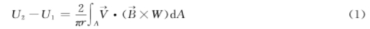 式中是兩電極的電勢差;A表示對所有空間積分;r為流量計截面管半徑;矢量V是導電流體的流速;B是磁感應強度;W為矢量權重函數,它是-一個只由電磁流量計本身結構決定的量.