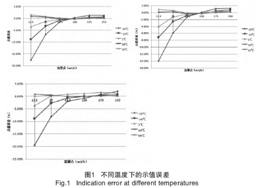 2)同臺流量計在相同的流量點下,隨著溫度越低,流量計量示值誤差負(fù)偏就越大;溫度越高,流量計示值誤差正偏就越大。